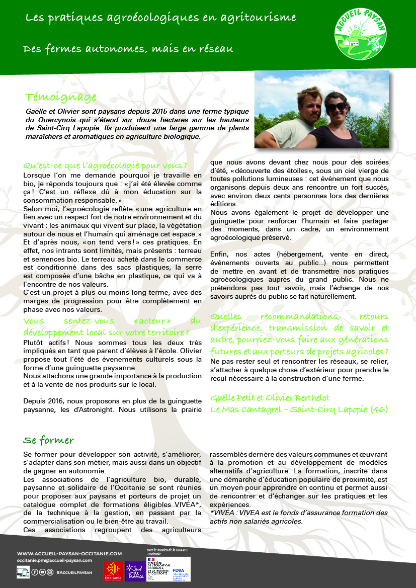 AGROÉCOLOGIE ET AGRITOURISME : UNE DÉMARCHE GLOBALE AU SERVICE DES TERRITOIRES RURAUX